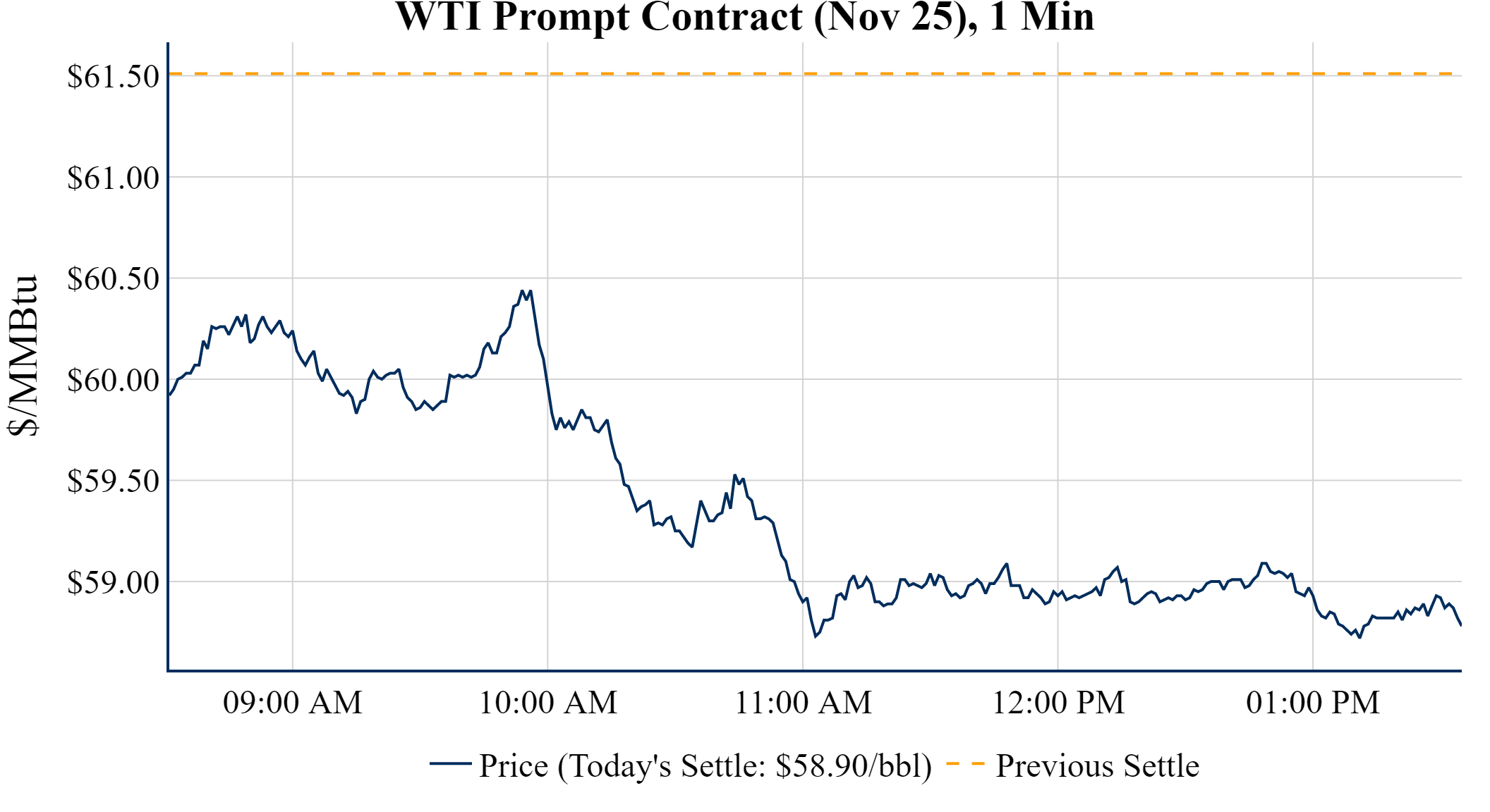 Oil falls more than $2.50/Bbl on China tariffs and Gaza peace deal