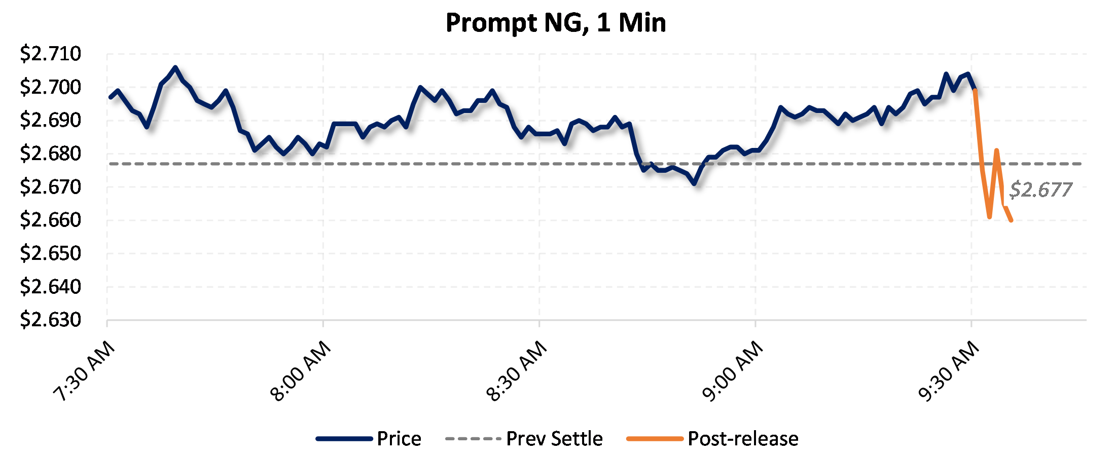 Prices were down in the five minutes following the announcement, to $2.643, from $2.703 just before 9:30am.