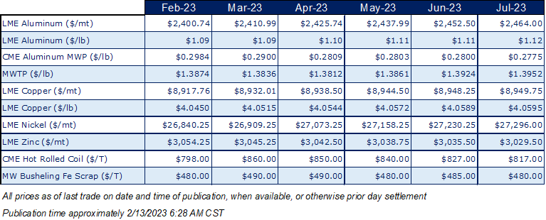 02/8/2023: AEGIS Factor Matrices: Most important variables affecting metals prices 02/07/2023: Will Aluminum's Rally Continue? 01/24/2023: Peruvian Protests Could Support Copper Prices 01/11/2023: Nickel Prices Could Remain Volatile Into 2023 |