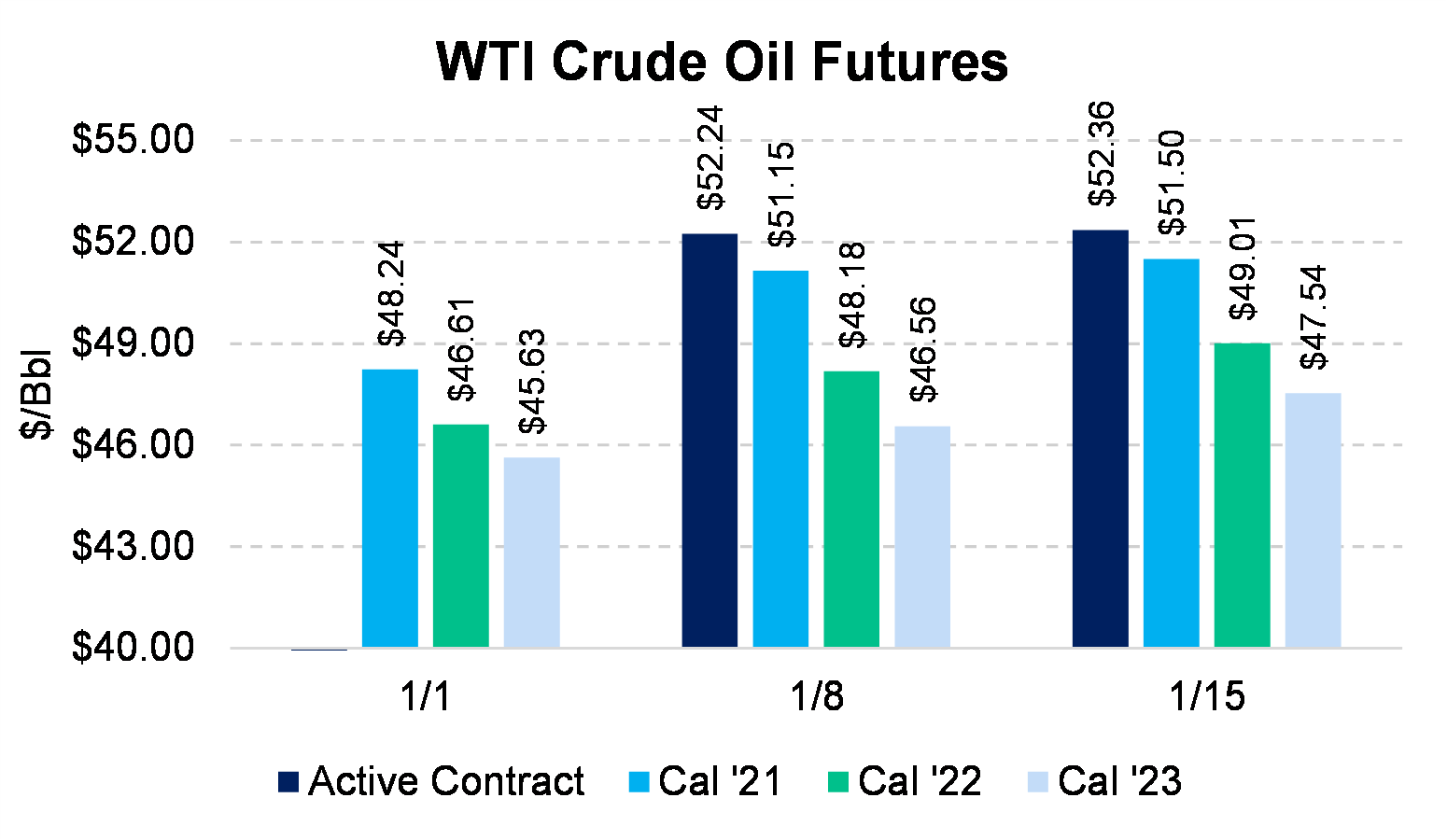 WTI took a round trip this week, ending the same place it started. It had gained over a dollar, with Feb settling at $53.77/Bbl, only to give it back on Friday, when WTI settled at $52.36
