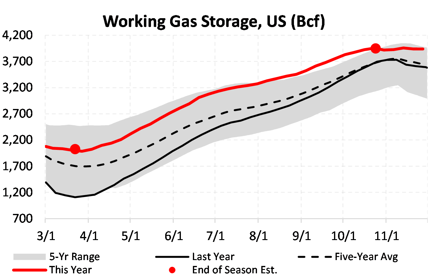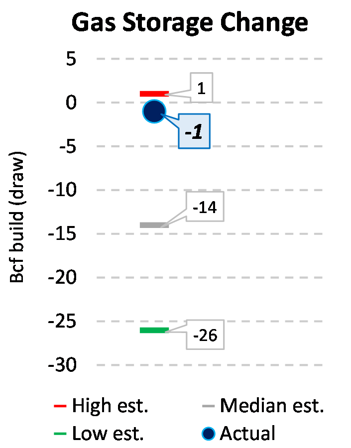 EIA reported a draw of -1 Bcf for the week ending 11/27/2020. This was smaller than the median estimate of -14 Bcf. Today's stat fell within the expected range, which was 1 Bcf on the more bearish end, and -26 Bcf on the more bullish end.