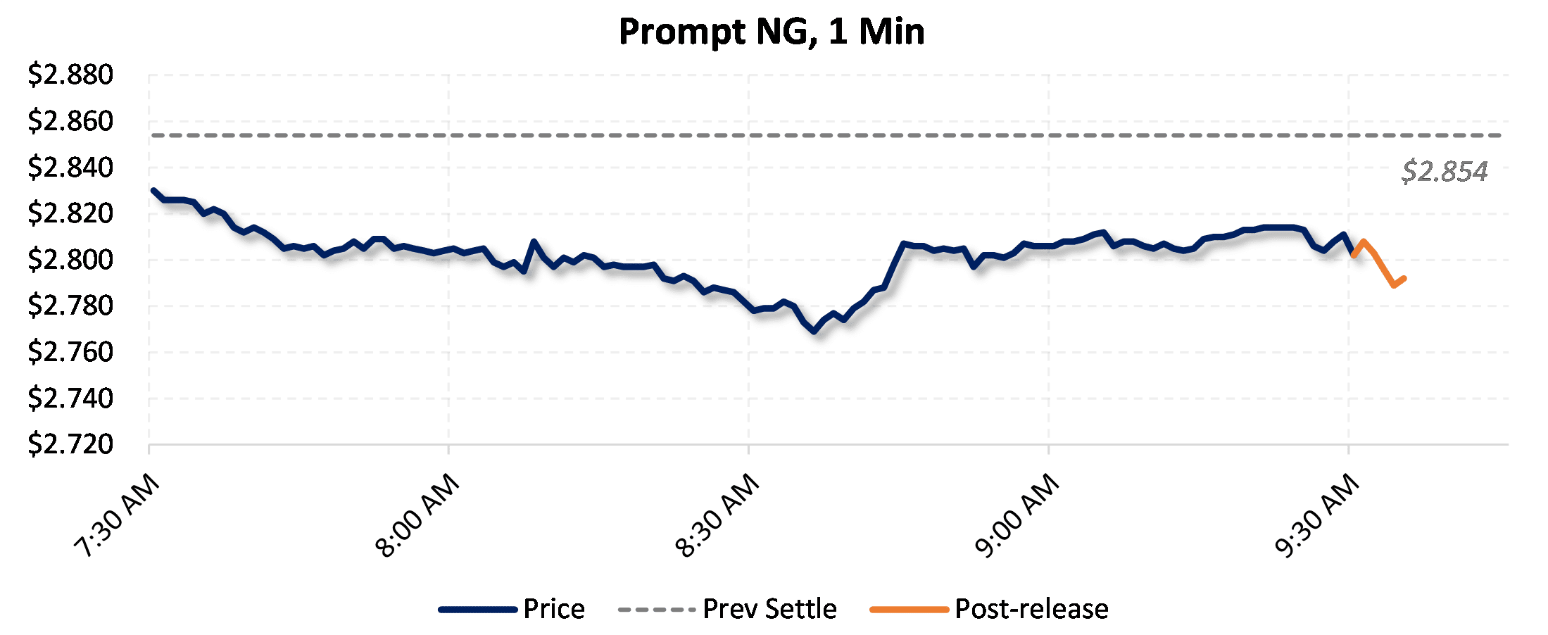 Prices were down in the five minutes following the announcement, to $2.788, from $2.808 just before 9:30am.