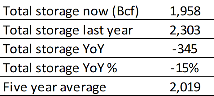 EIA reported a build of 60 Bcf for the week ending 4/30/2021. This was smaller than the median estimate of 65 Bcf. Today's stat fell within the expected range, which was 76 Bcf on the more bearish end, and 49 Bcf on the more bullish end.