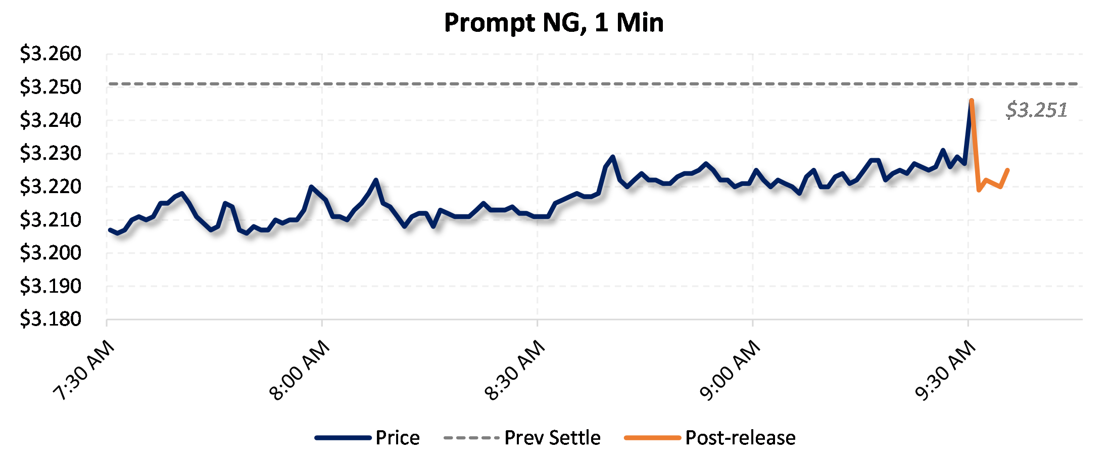 Prices were down in the five minutes following the announcement, to $3.215, from $3.229 just before 9:30am.