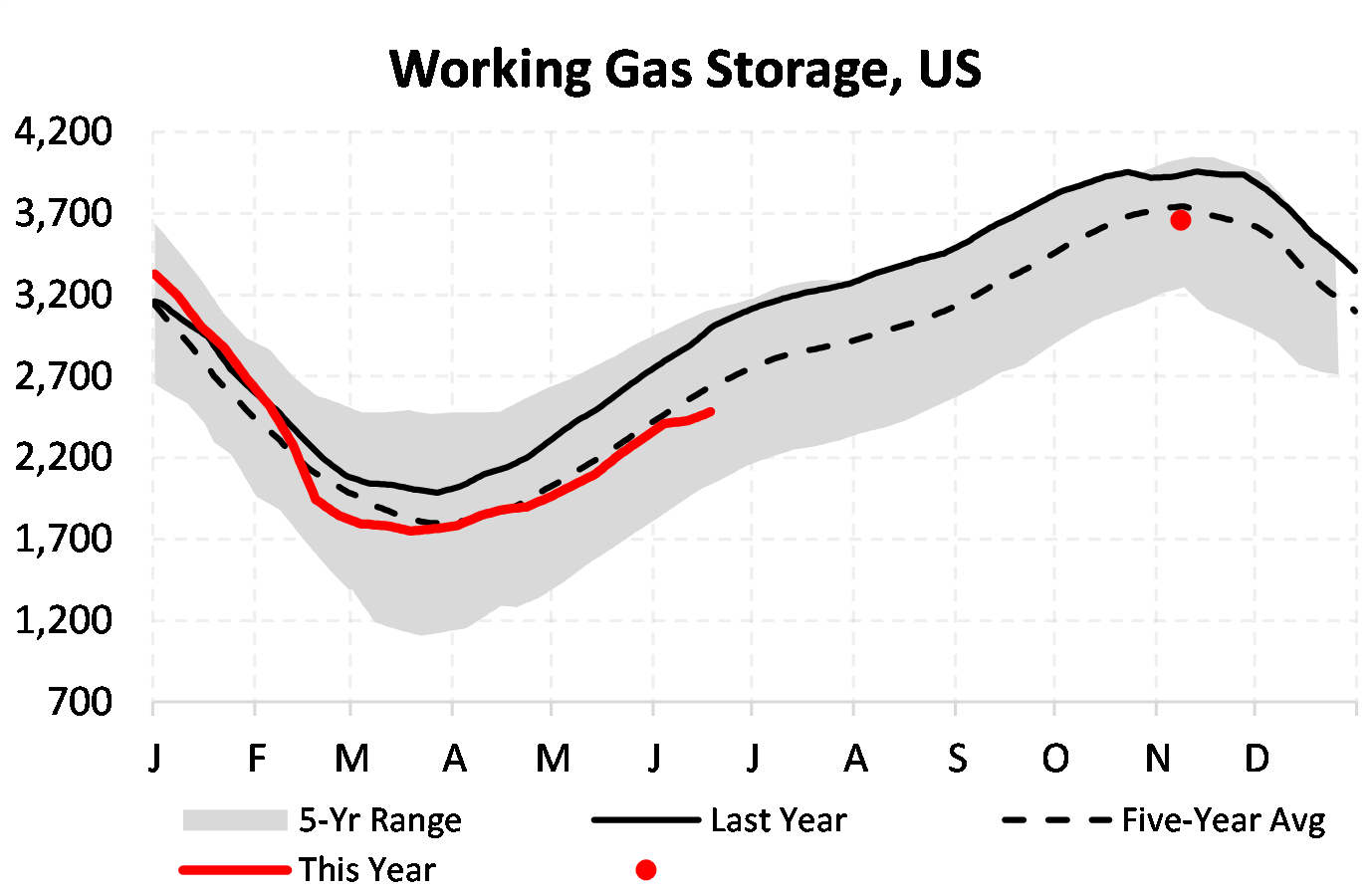 EIA reported a build of 55 Bcf for the week ending 6/18/2021. This was smaller than the median estimate of 64 Bcf. Today's stat fell outside the expected range, which was 72 Bcf on the more bearish end, and 56 Bcf on the more bullish end.