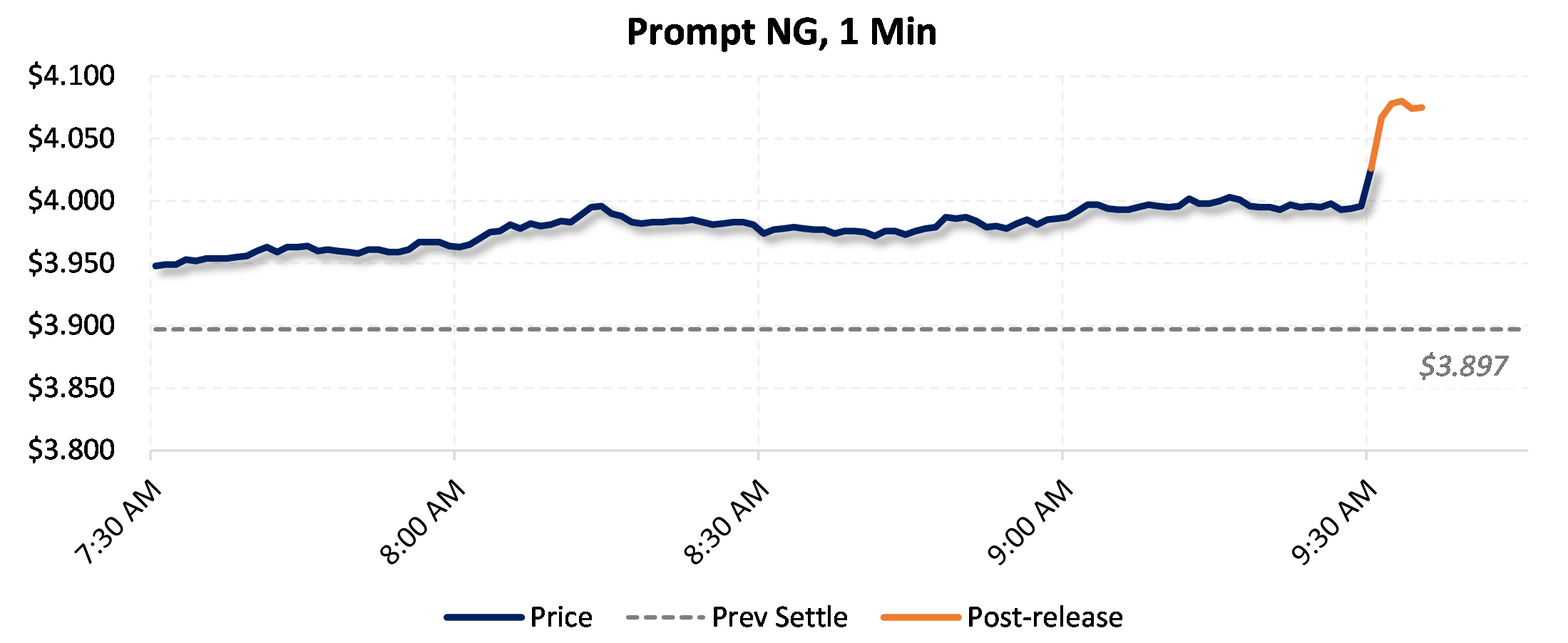 Prices were up in the five minutes following the announcement, to $4.079, from $3.994 just before 9:30am.