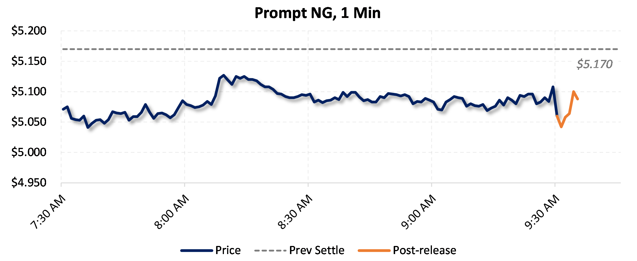 Prices were up in the five minutes following the announcement, to $5.094, from $5.084 just before 9:30am.