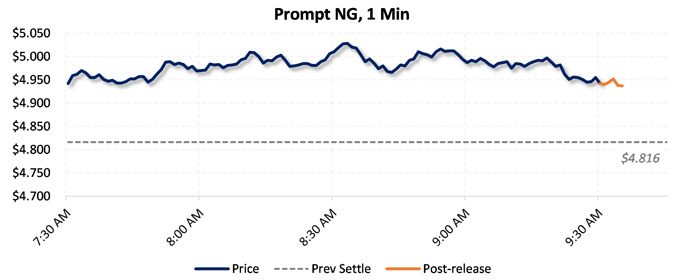 Prices were down in the five minutes following the announcement, to $4.91, from $4.946 just before 9:30am.