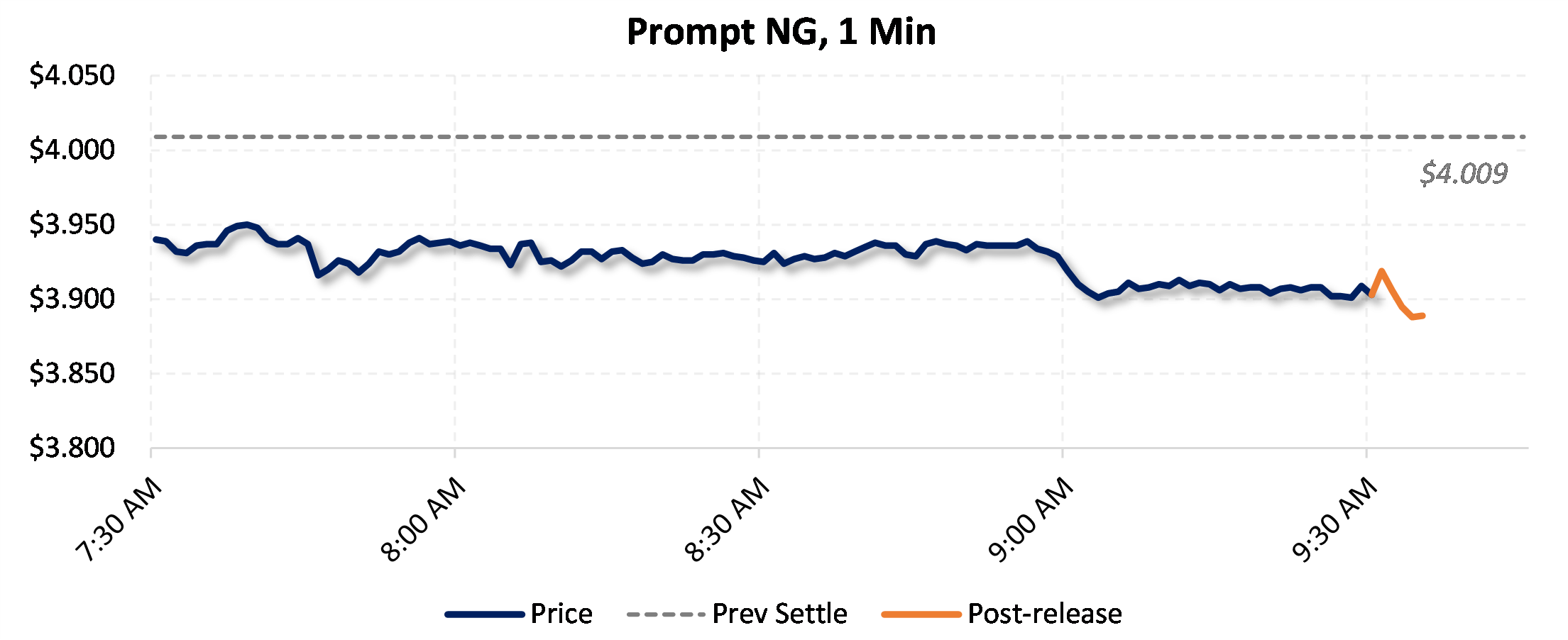 Prices were up in the five minutes following the announcement, to $3.919, from $3.901 just before 9:30am.