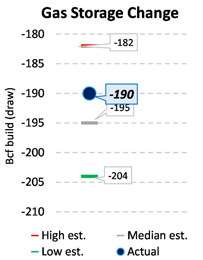 EIA reported a draw of -190 Bcf for the week ending 2/11/2022. This was smaller than the median estimate of -195 Bcf. Today's stat fell within the expected range, which was -182 Bcf on the more bearish end, and -204 Bcf on the more bullish end.