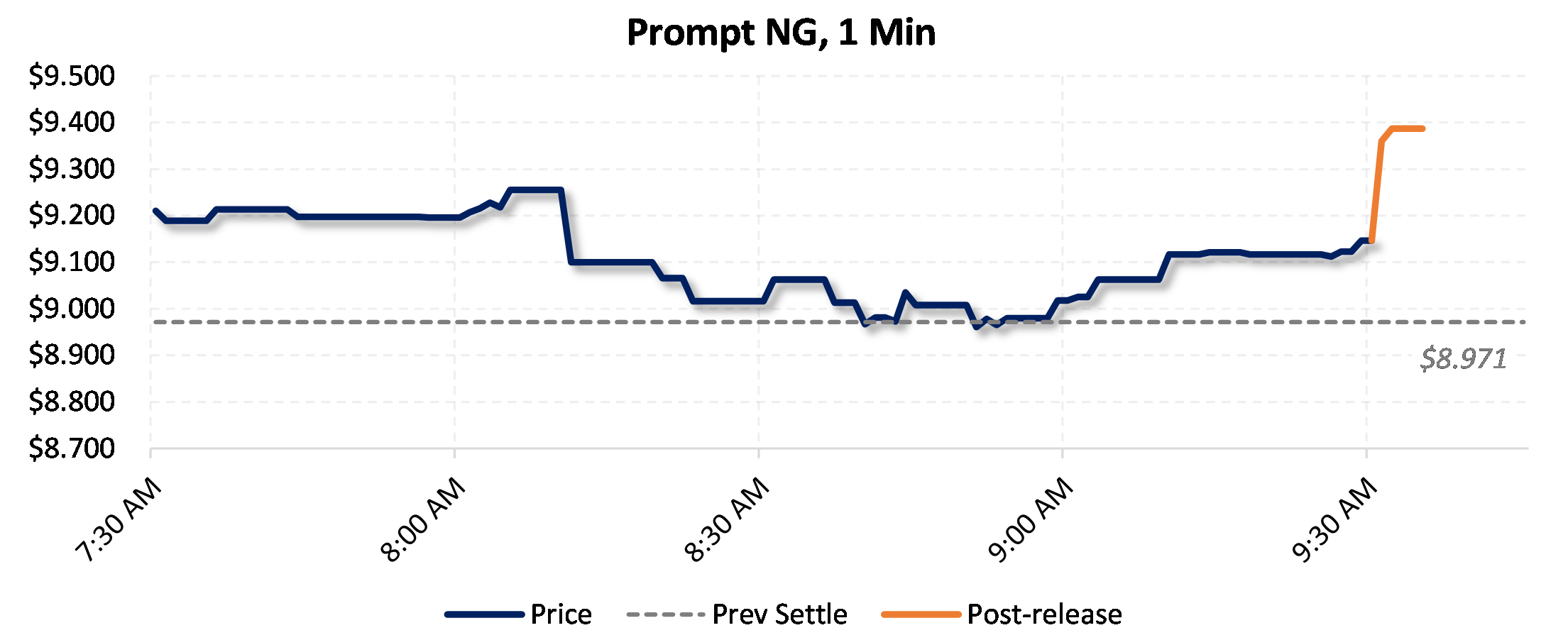 Prices were up in the five minutes following the announcement, to $9.300, from $9.123 just before 9:30am.