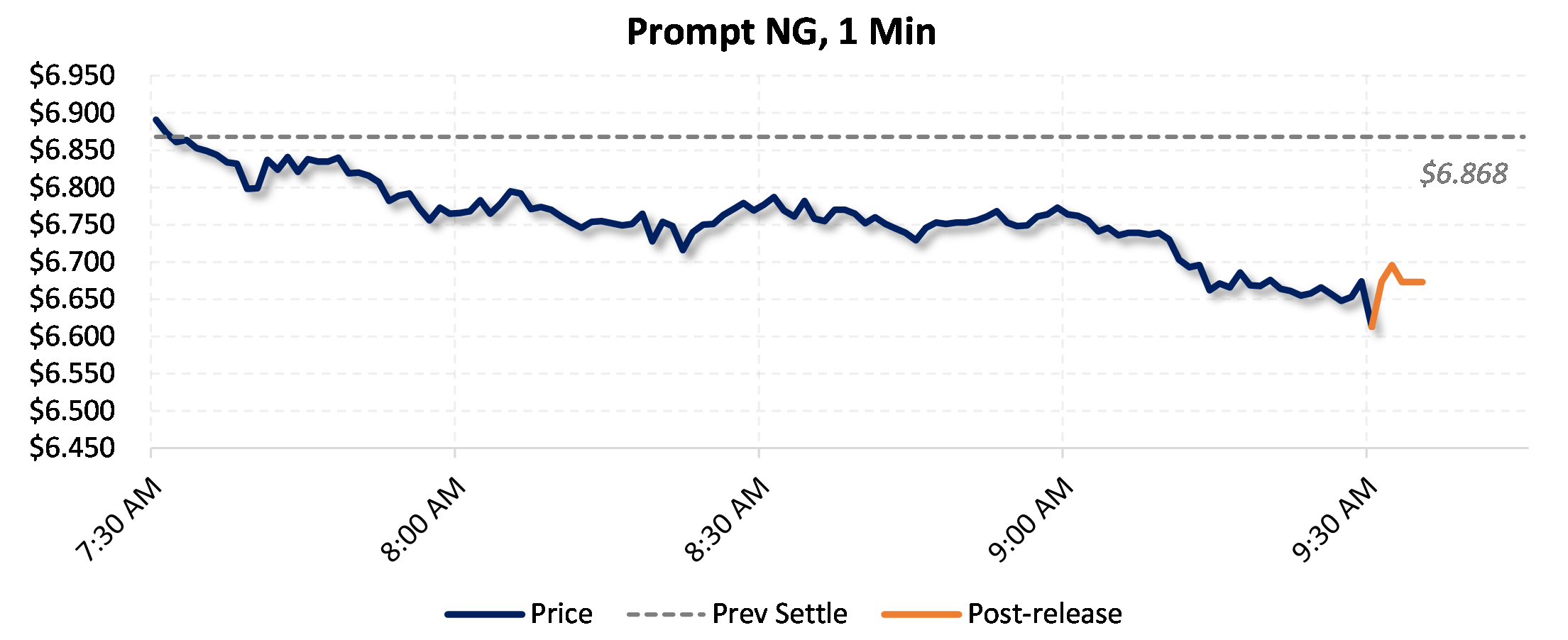 Prices were down in the five minutes following the announcement, to $6.637, from $6.653 just before 9:30am.