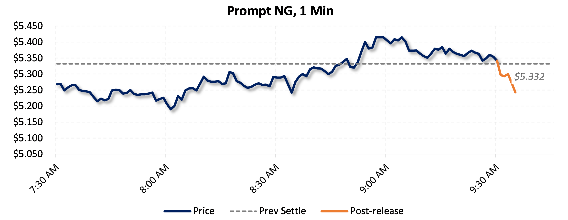 Prices were down in the five minutes following the announcement, to $5.272, from $5.36 just before 9:30am.