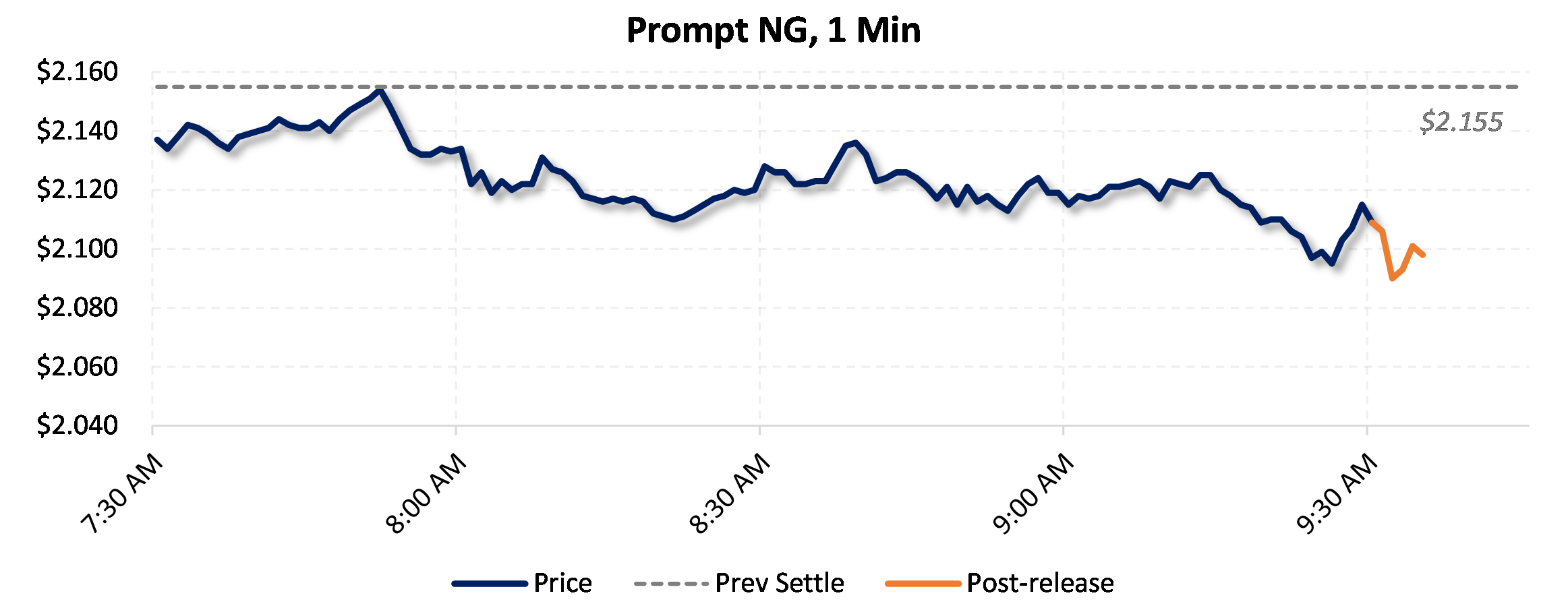 Prices were unchanged in the five minutes following the announcement, to $2.107, from $2.107 just before 9:30am.