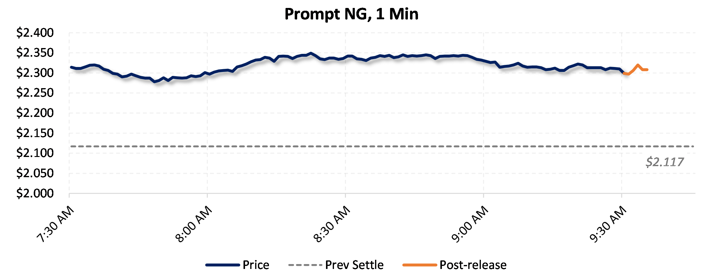Prices were down in the five minutes following the announcement, to $2.292, from $2.311 just before 9:30am.