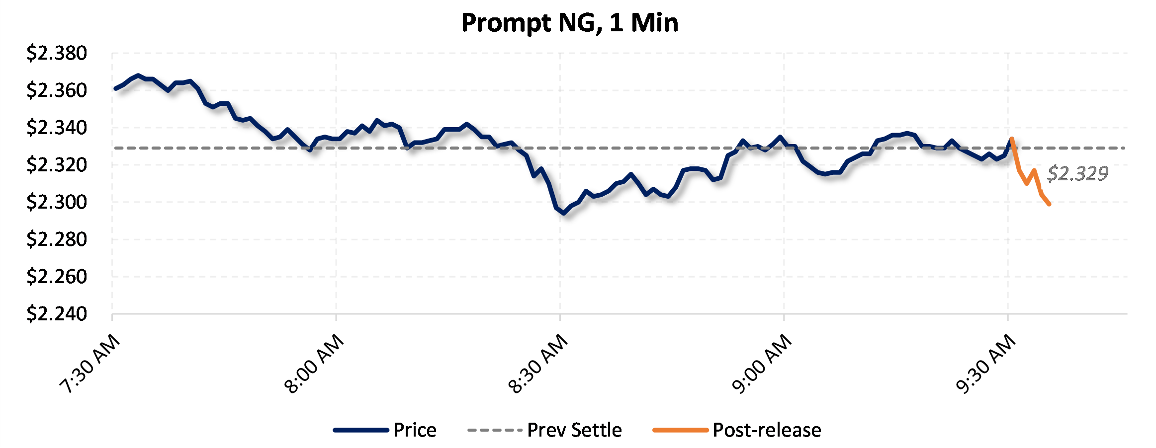 Prices were down in the five minutes following the announcement, to $2.292, from $2.323 just before 9:30am.