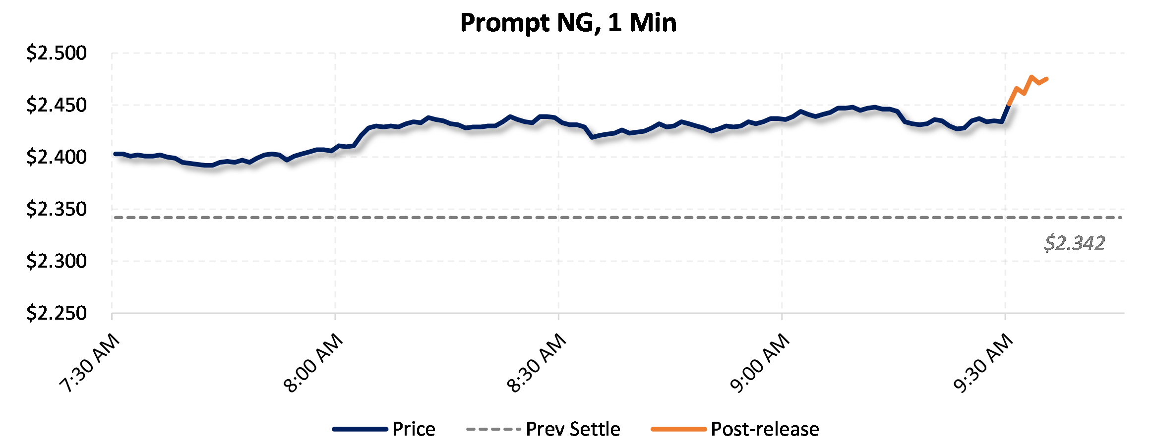 Prices were up in the five minutes following the announcement, to $2.49, from $2.435 just before 9:30am.