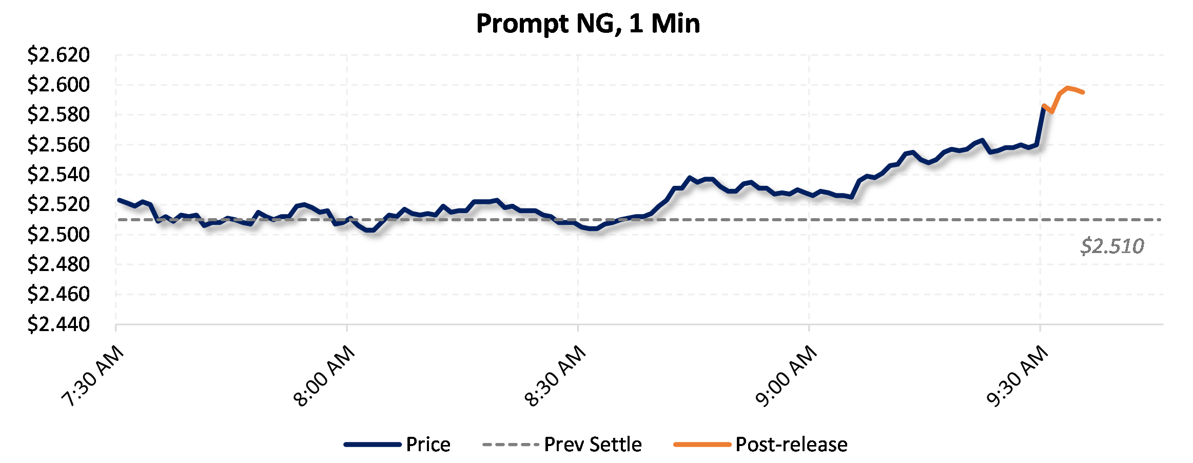 Prices were up in the five minutes following the announcement, to $2.585, from $2.558 just before 9:30am.