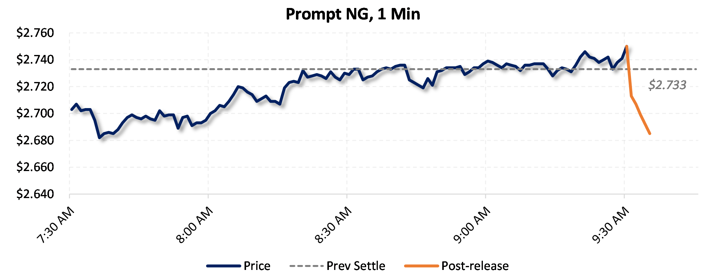Prices were down in the five minutes following the announcement, to $2.703, from $2.738 just before 9:30am.