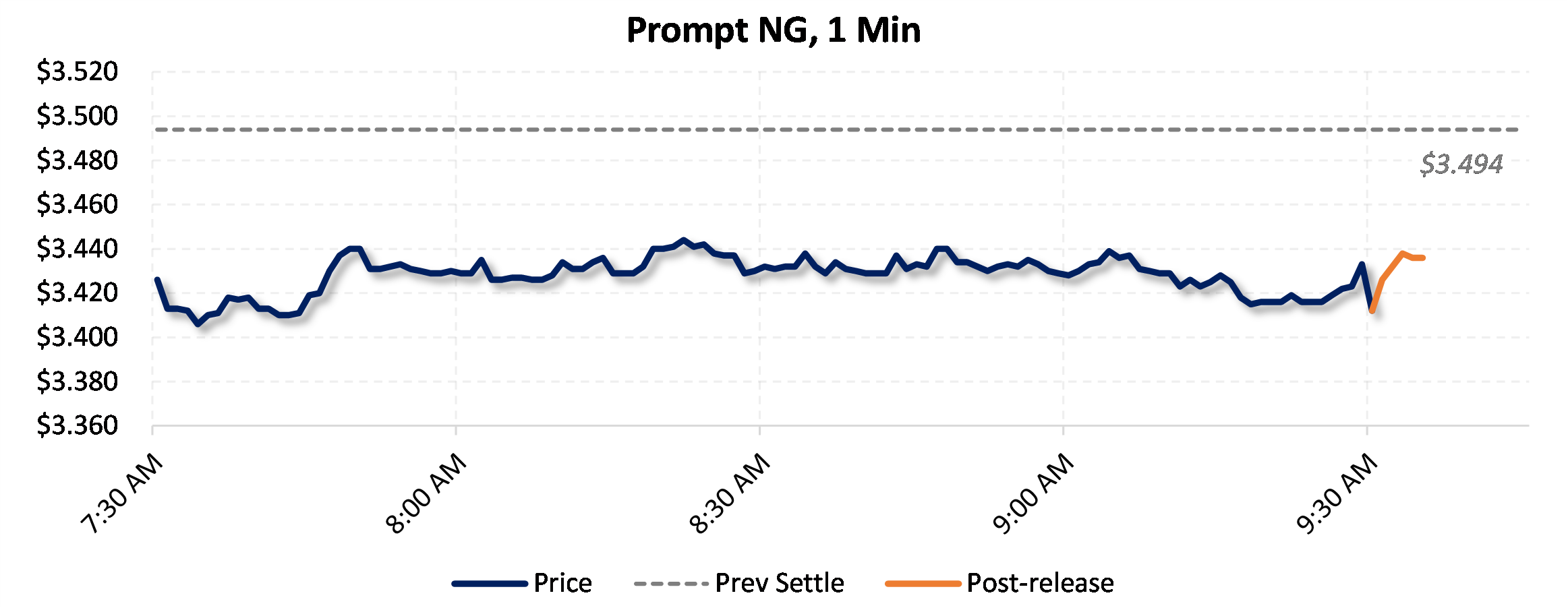 Prices were up in the five minutes following the announcement, to $3.457, from $3.423 just before 9:30am.