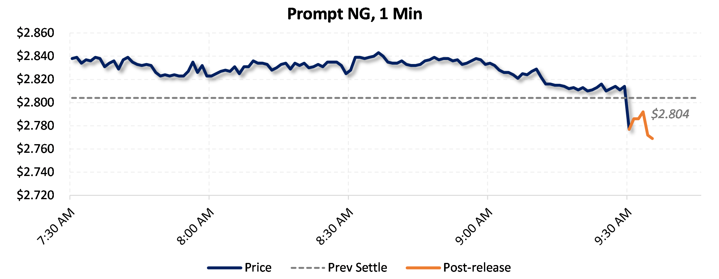 Prices were down in the five minutes following the announcement, to $2.798, from $2.811 just before 9:30am.