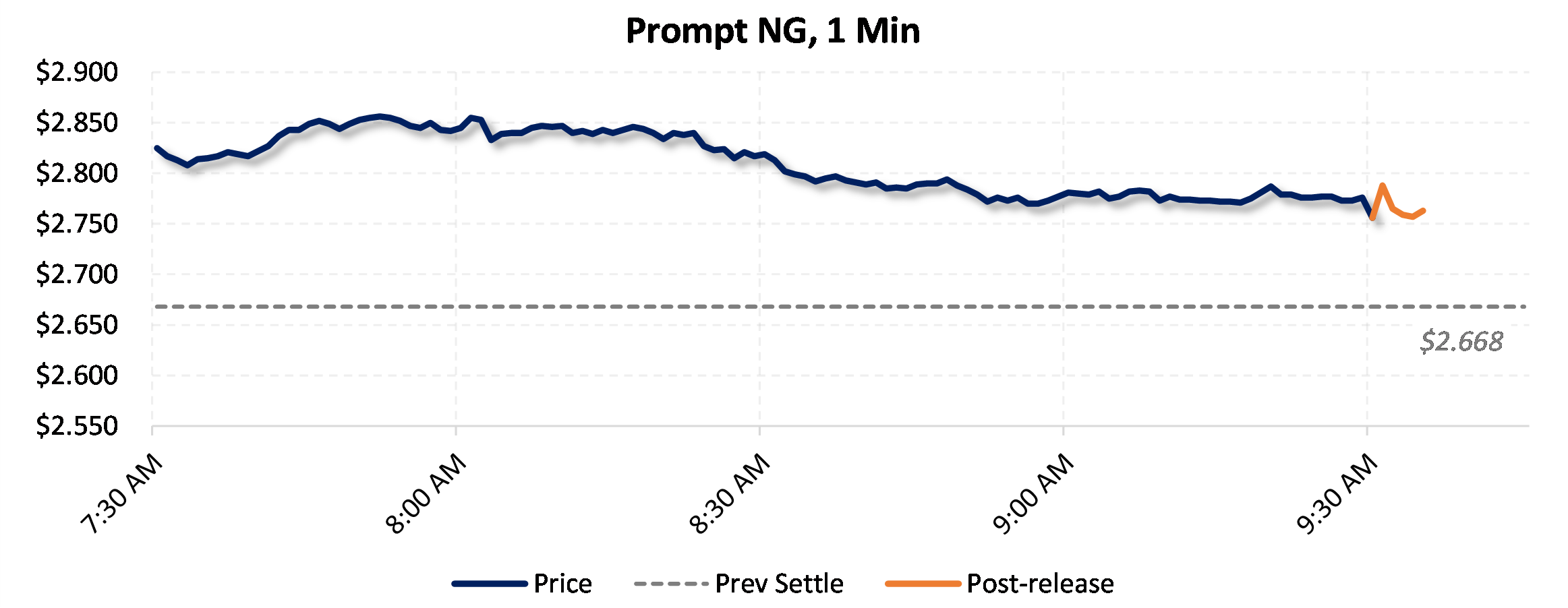 Prices were down in the five minutes following the announcement, to $2.762, from $2.773 just before 9:30am.