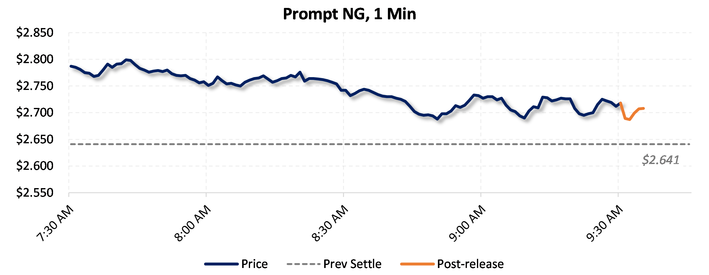 Prices were down in the five minutes following the announcement, to $2.641, from $2.719 just before 9:30am.