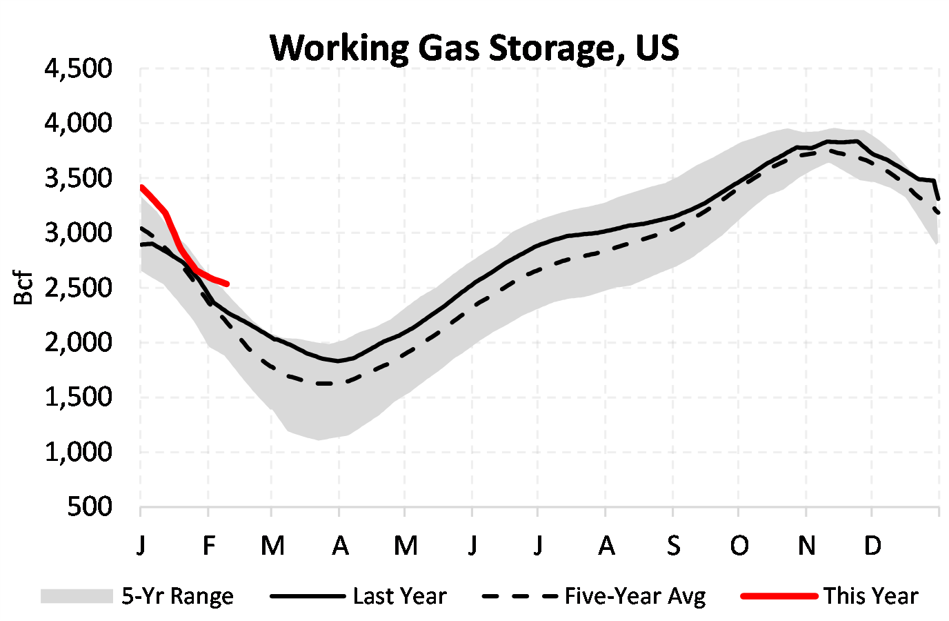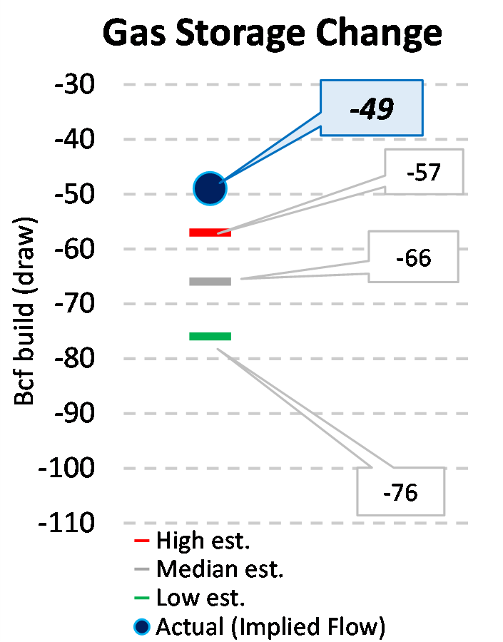 EIA reported a draw of -49 Bcf for the week ending 2/09/2024. This was smaller than the median estimate of -66 Bcf. Today's stat fell outside the expected range, which was -57 Bcf on the more bearish end, and -76 Bcf on the more bullish end.