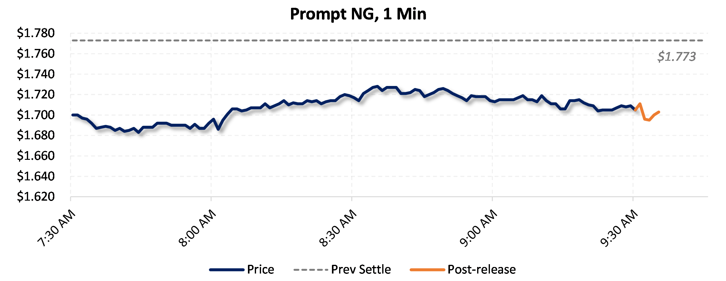 Prices were down in the five minutes following the announcement, to $1.694, from $1.708 just before 9:30am.