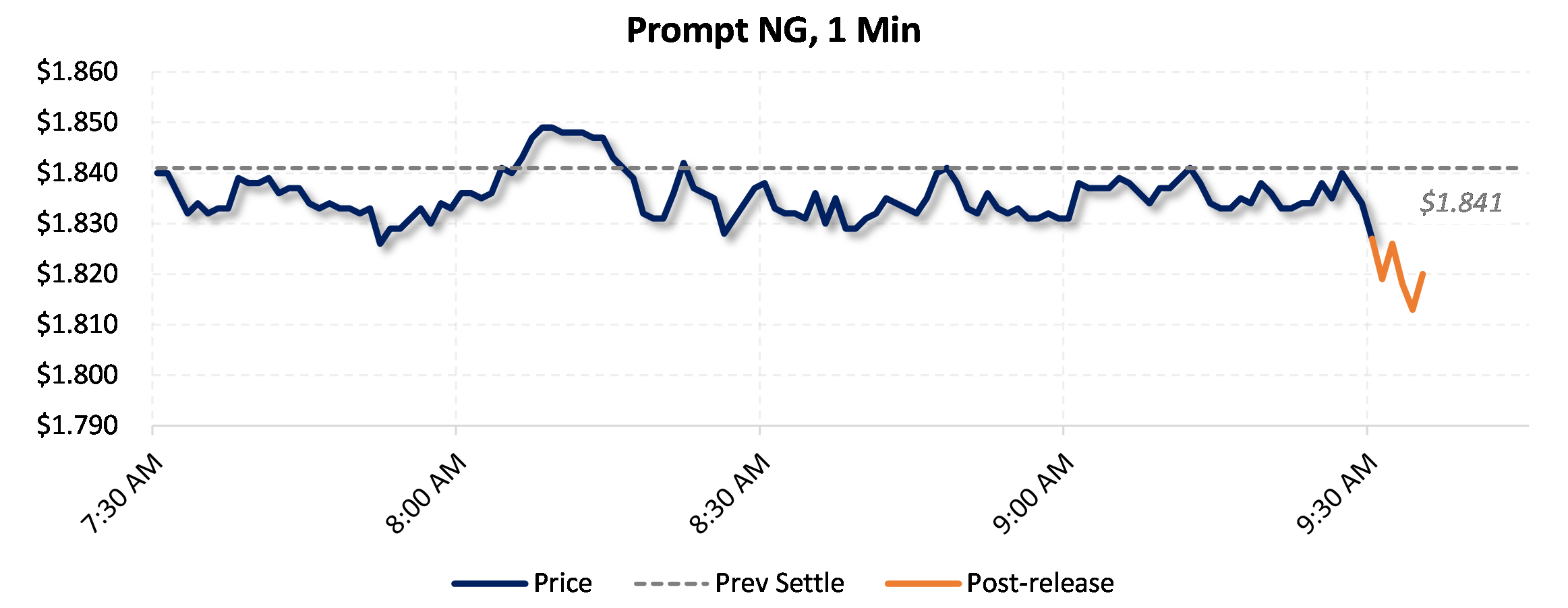 Prices were down in the five minutes following the announcement, to $1.809, from $1.837 just before 9:30am.