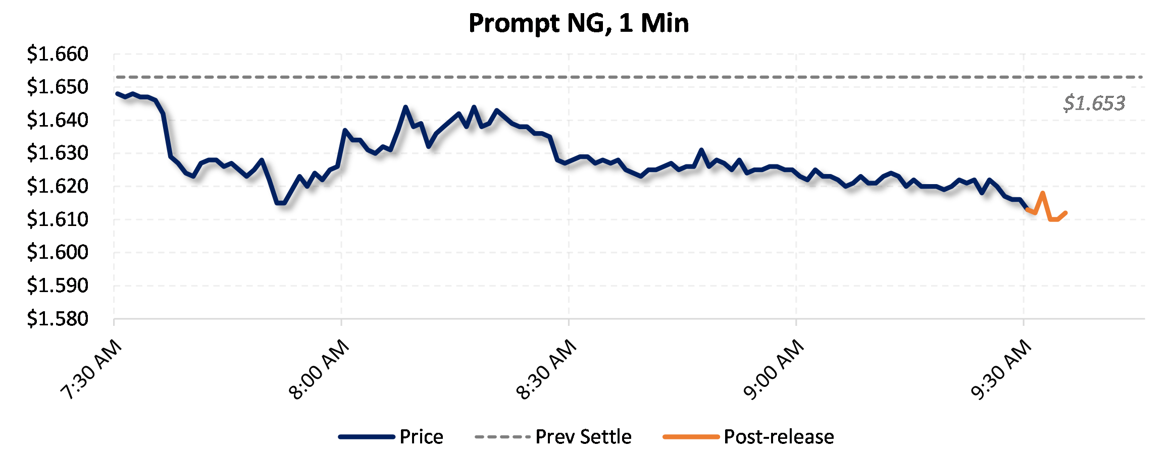 Prices were up in the five minutes following the announcement, to $1.619, from $1.616 just before 9:30am.