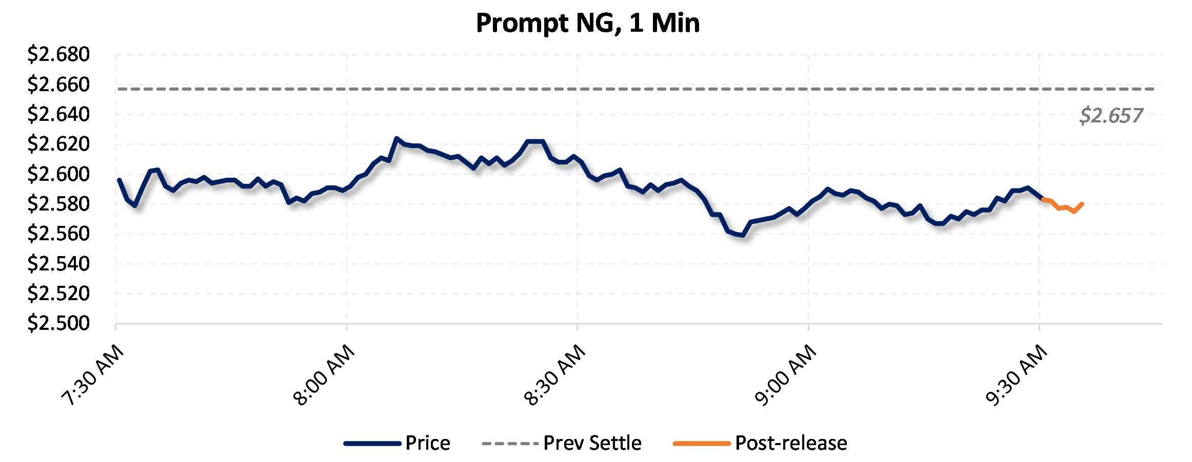 Prices were down in the five minutes following the announcement, to $2.538, from $2.591 just before 9:30am.