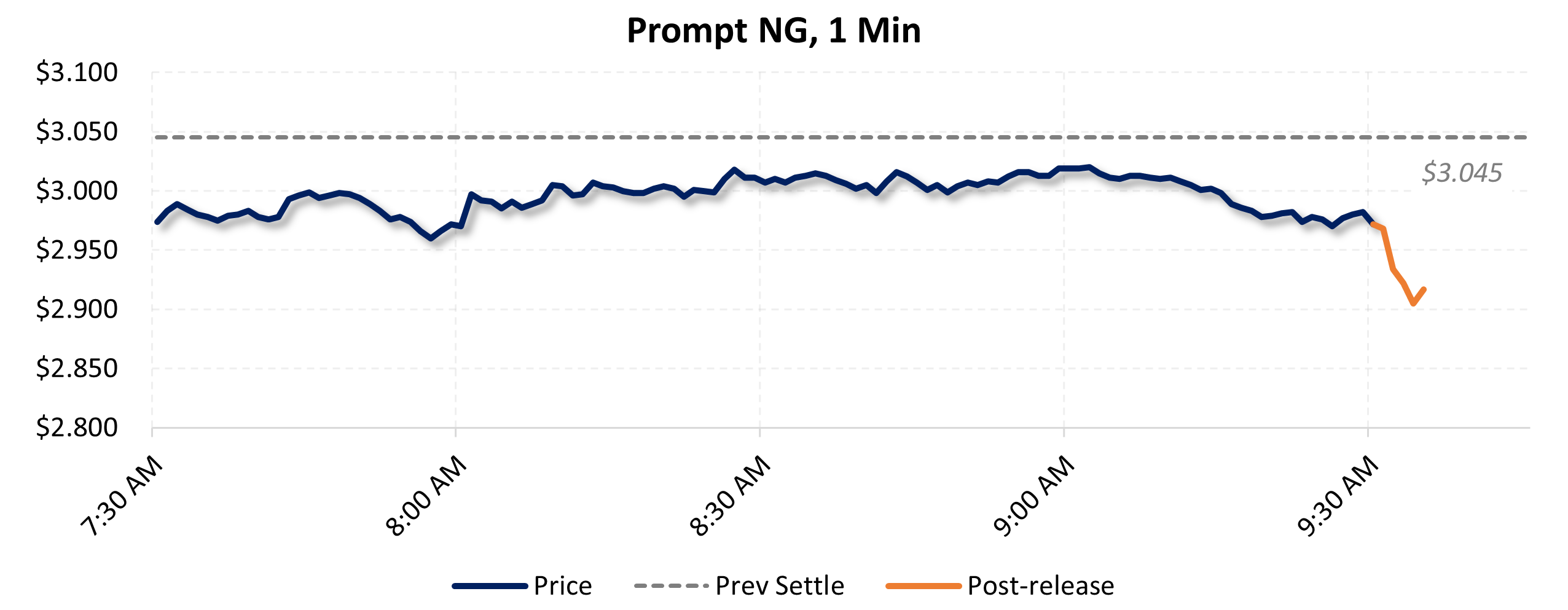 Prices were down in the five minutes following the announcement, to $2.92, from $2.98 just before 9:30am.