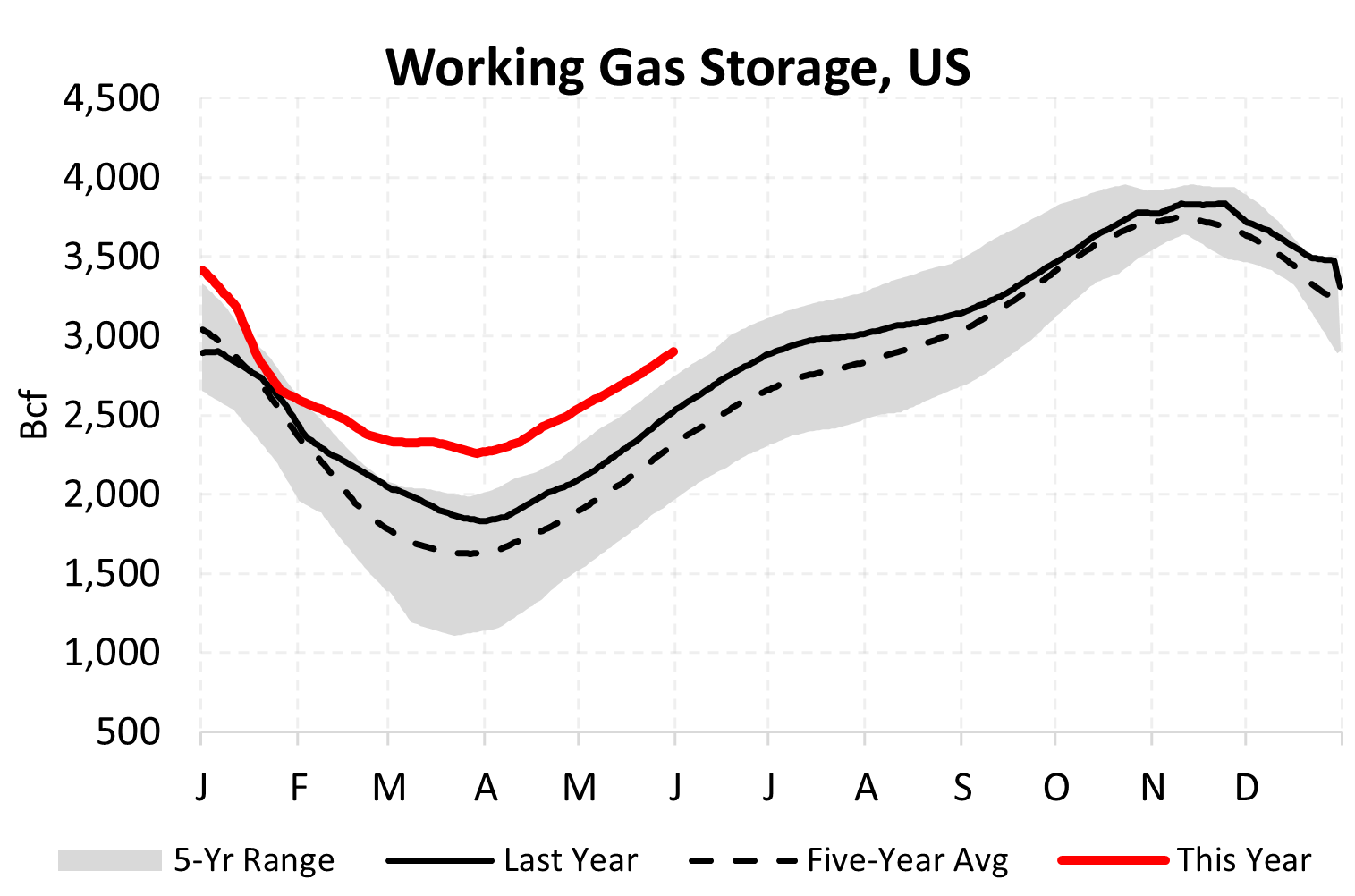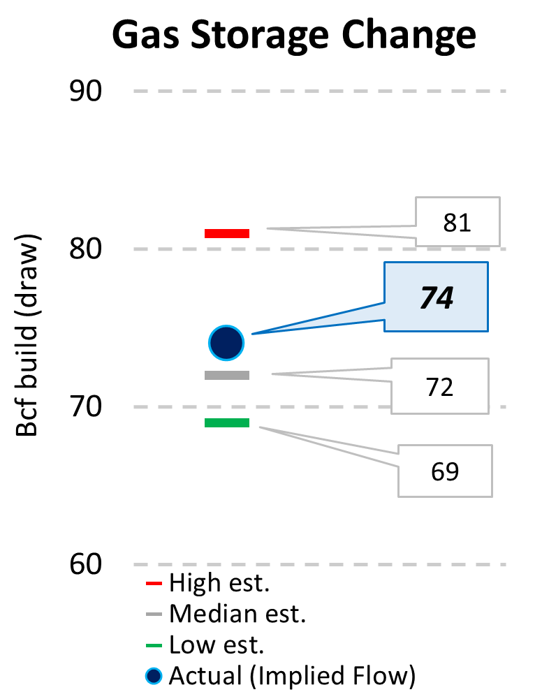 EIA reported a build of 74 Bcf for the week ending 6/07/2024. Today's stat fell within the expected range, which was 81 Bcf on the more bearish end, and 69 Bcf on the more bullish end. This was larger than the median estimate of 72 Bcf.