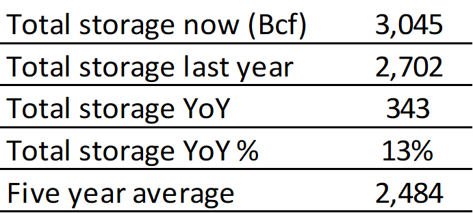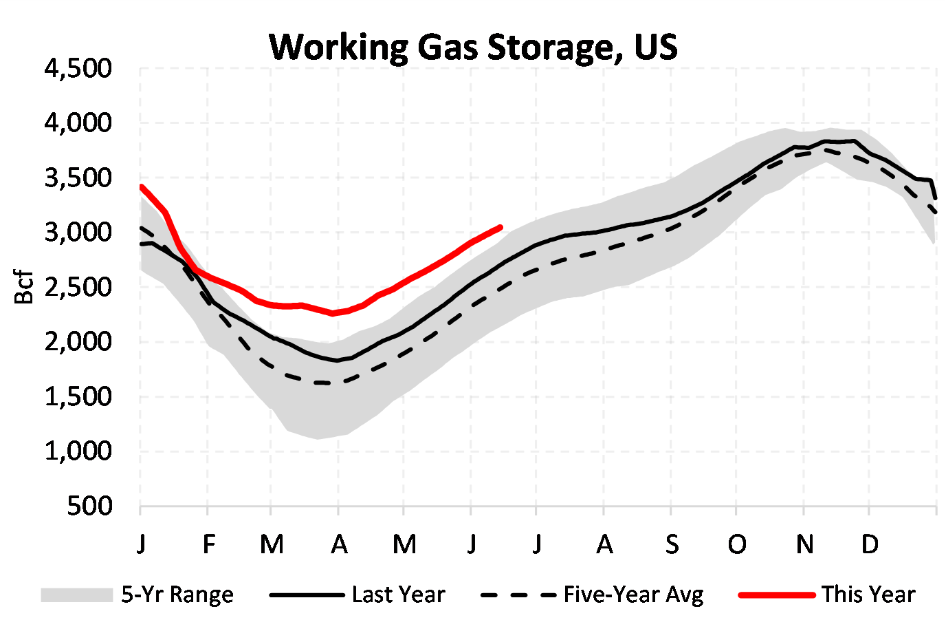 EIA reported a build of 71 Bcf for the week ending 6/14/2024. This was larger than the median estimate of 69 Bcf. Today's stat fell within the expected range, which was 80 Bcf on the more bearish end, and 64 Bcf on the more bullish end.