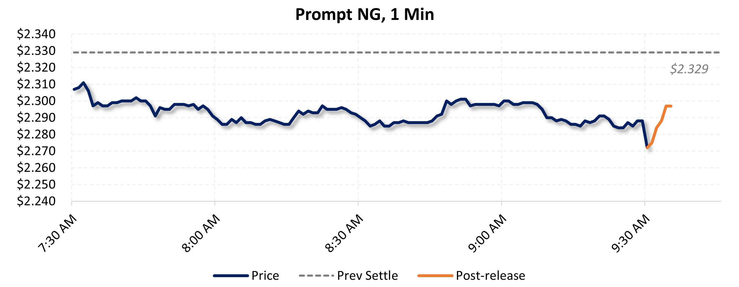 Prices were up in the five minutes following the announcement, to $2.289, from $2.288 just before 9:30am.