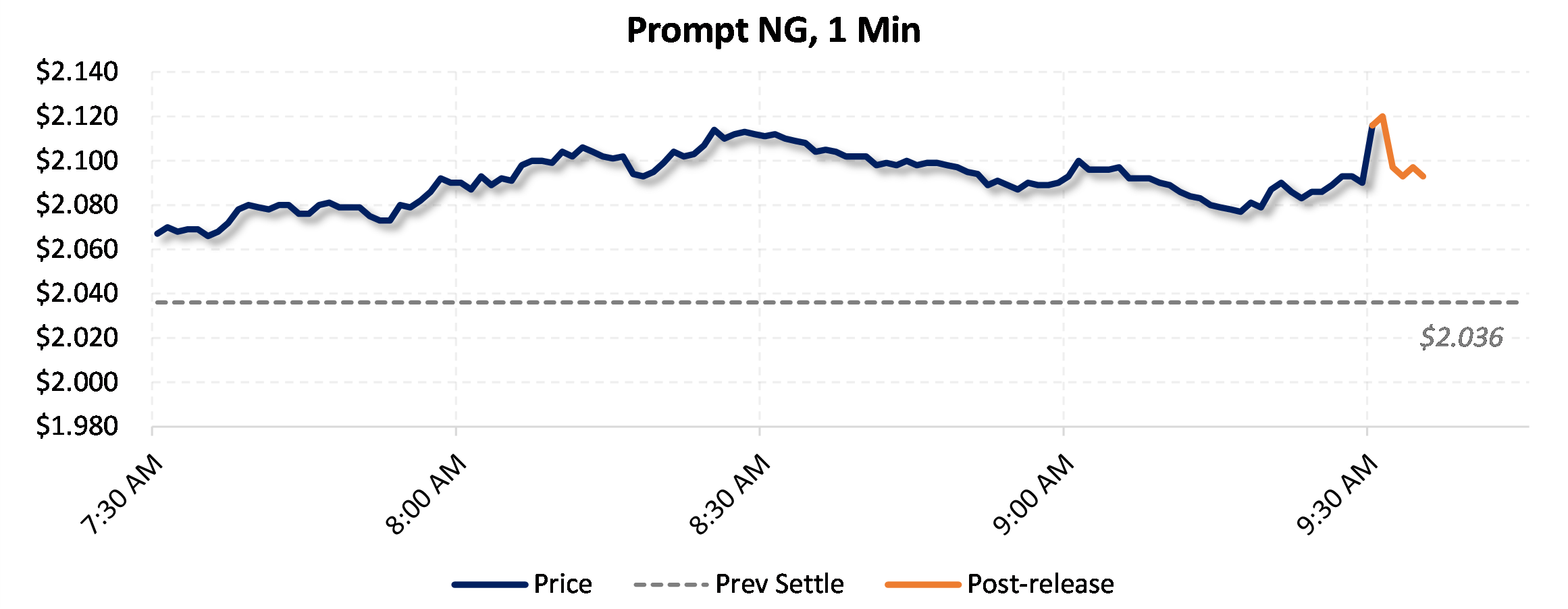 Prices were up in the five minutes following the announcement, to $2.1, from $2.093 just before 9:30am.