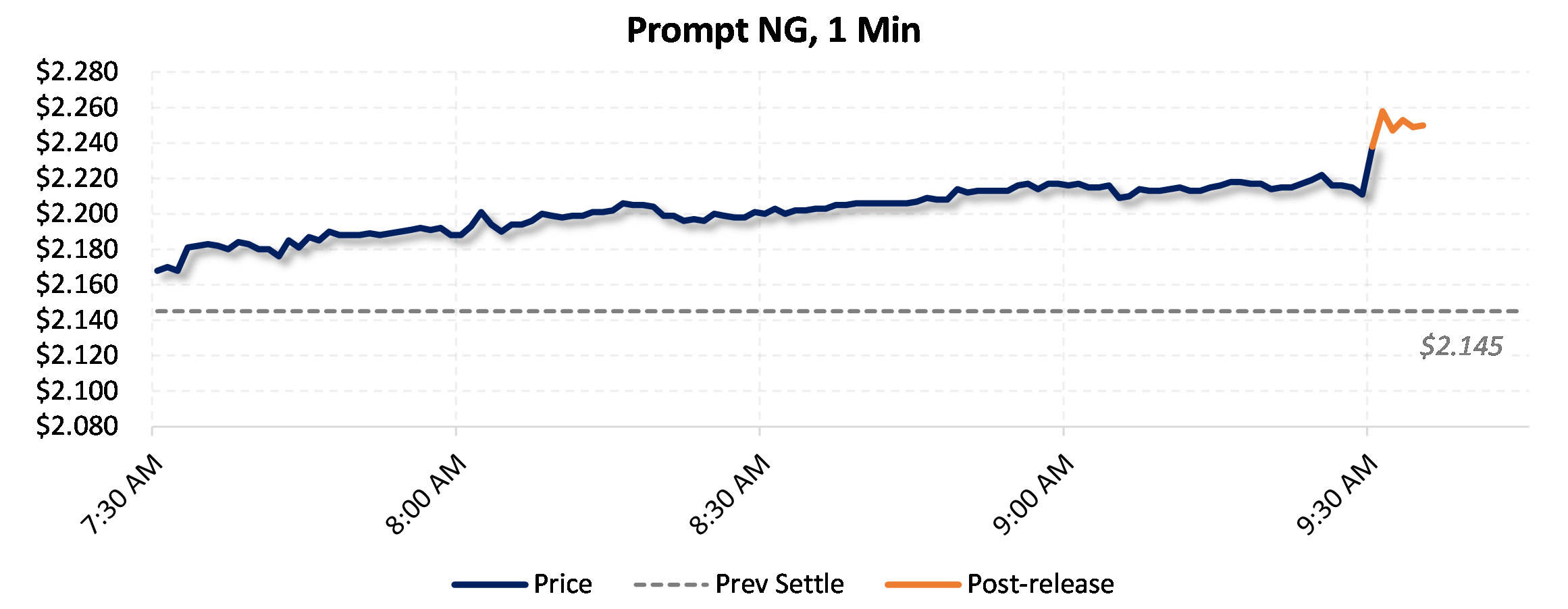 Prices were up in the five minutes following the announcement, to $2.274, from $2.215 just before 9:30am.