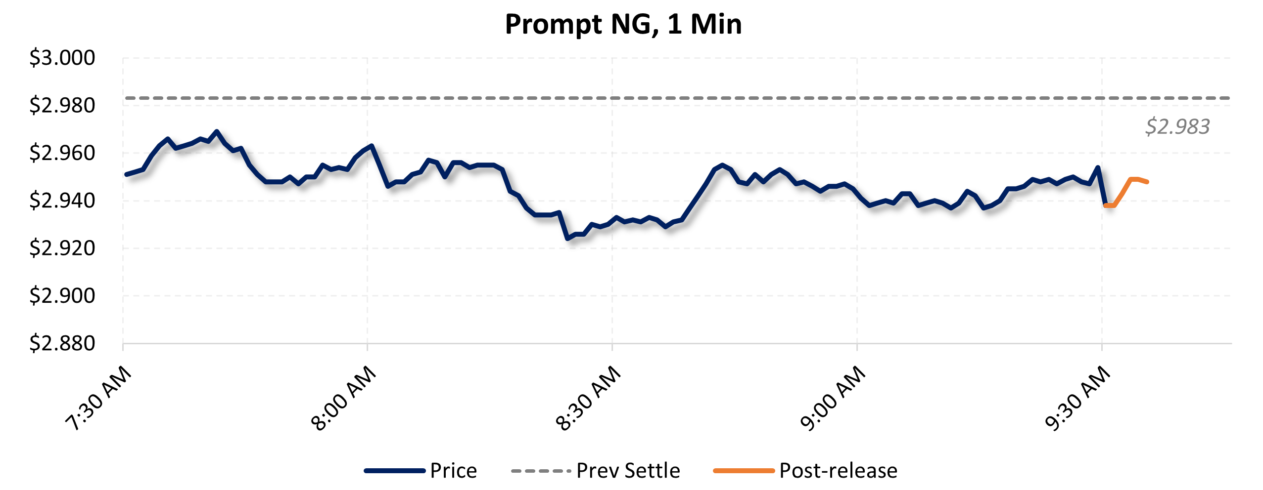 Prices were down in the five minutes following the announcement, to $2.891, from $2.947 just before 9:30am.