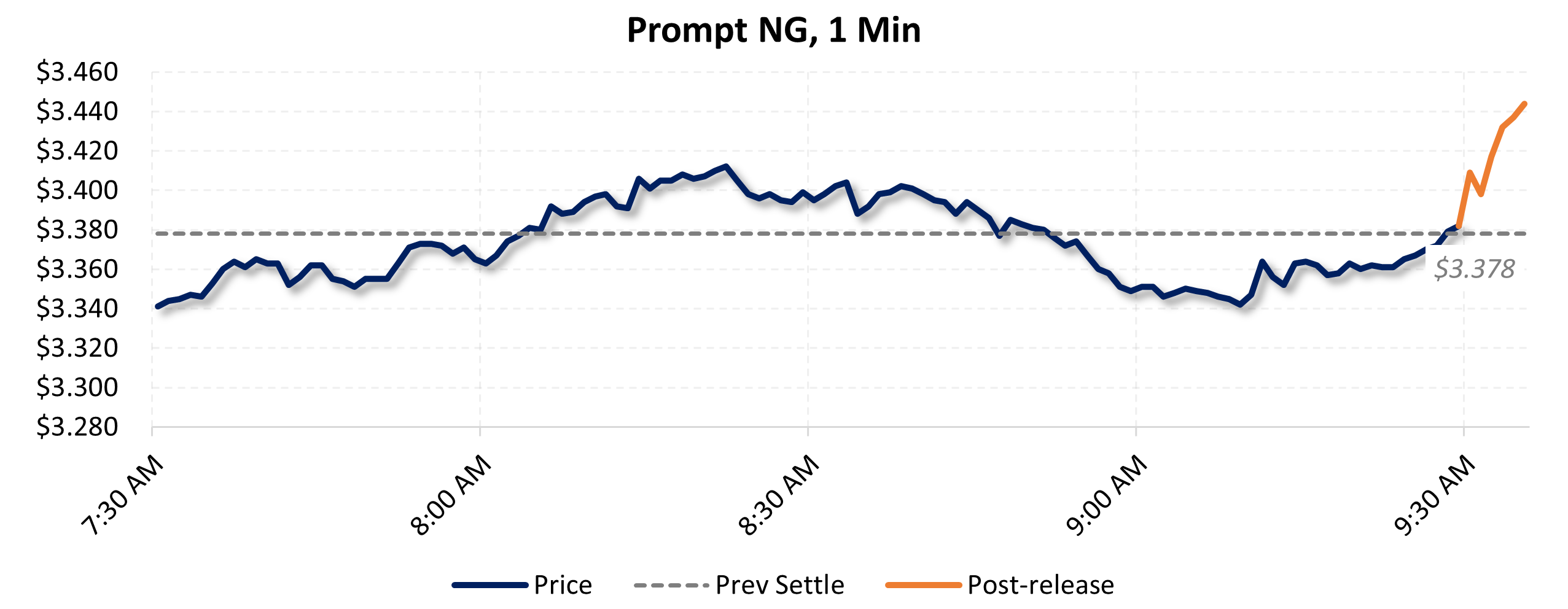 Prices were up in the five minutes following the announcement, to $3.437, from $3.382 just before 9:30am.