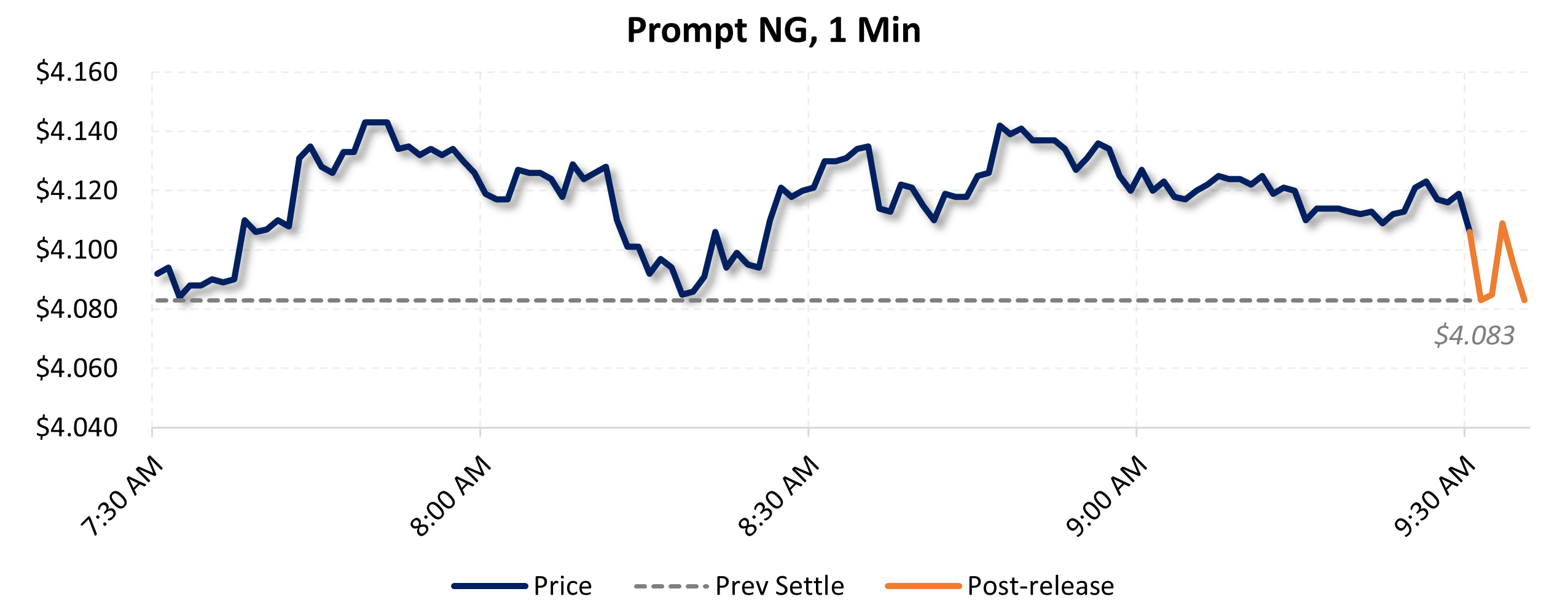 Prices were down in the five minutes following the announcement, to $4.083, from $4.119 just before 9:30am.
