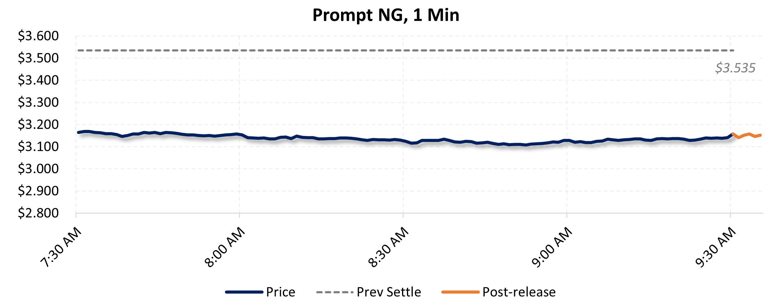 Prices were up in the five minutes following the announcement, to $3.152, from $3.141 just before 9:30am.