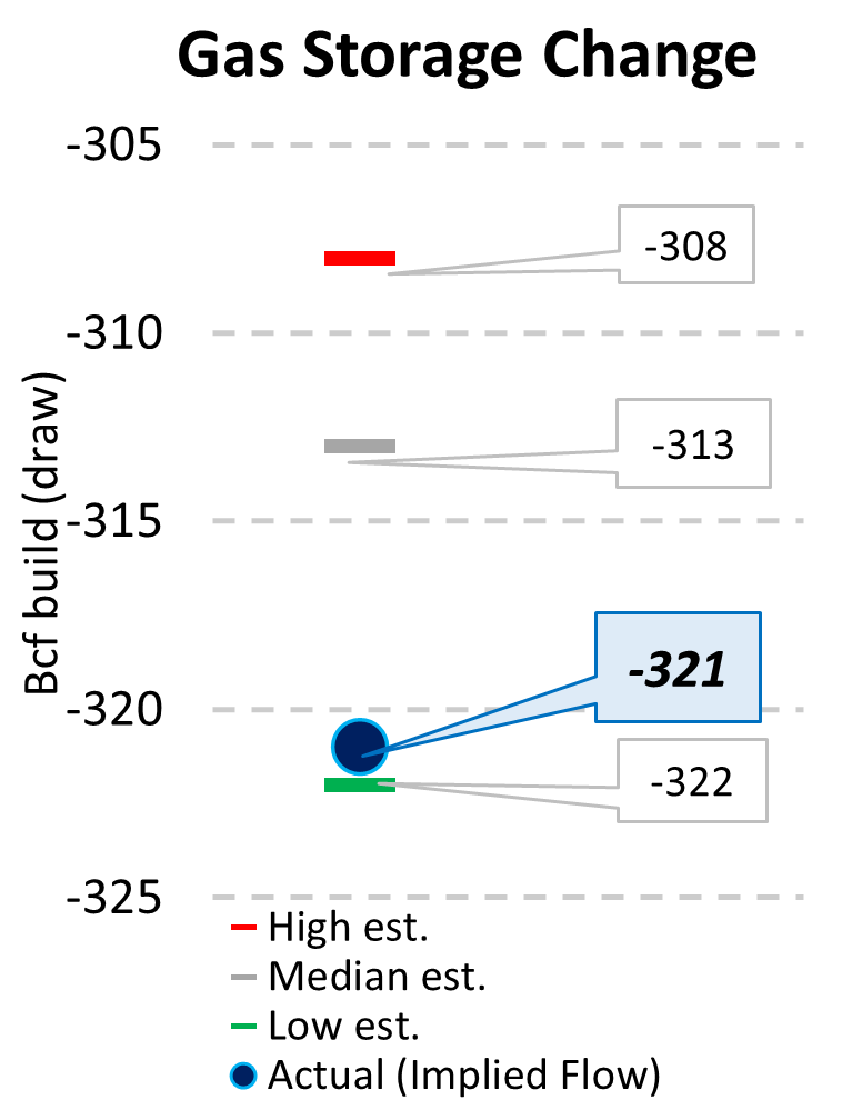 EIA reported a draw of -321 Bcf for the week ending 1/24/2025. This was larger than the median estimate of -313 Bcf. Today's stat fell within the expected range, which was -308 Bcf on the more bearish end, and -322 Bcf on the more bullish end.