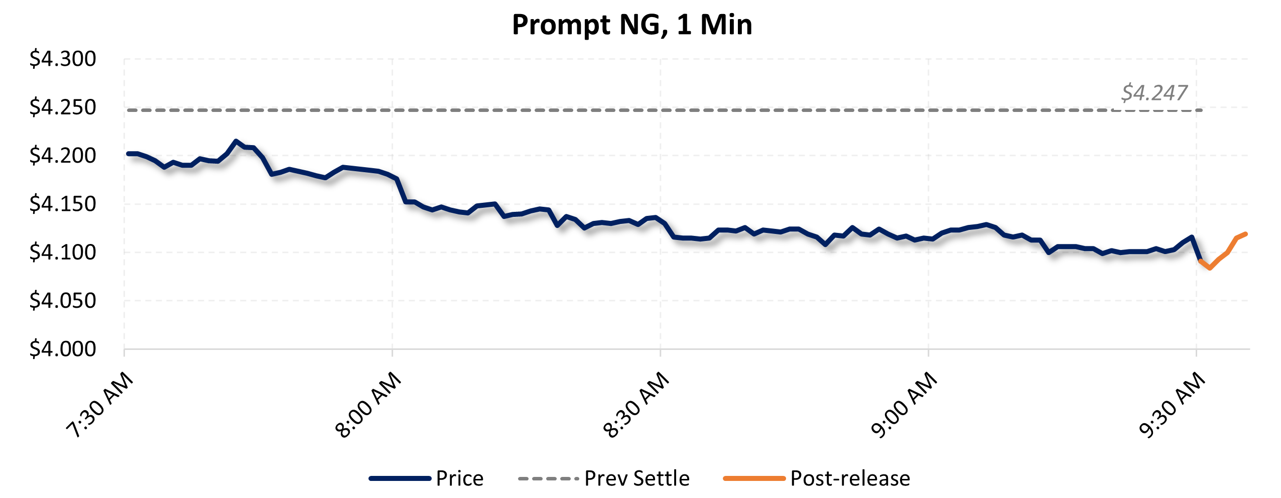 Prices were up in the five minutes following the announcement, to $4.119, from $4.116 just before 9:30am.