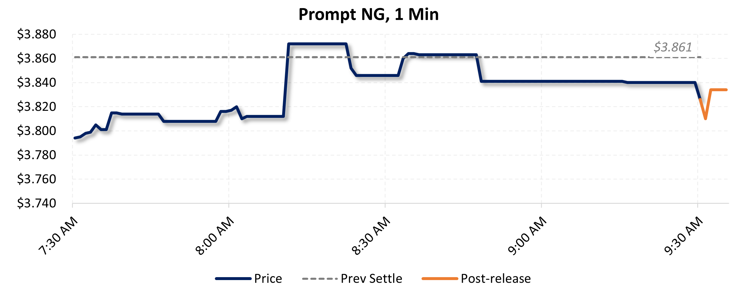 Prices were down in the five minutes following the announcement, to $3.834, from $3.84 just before 9:30am.