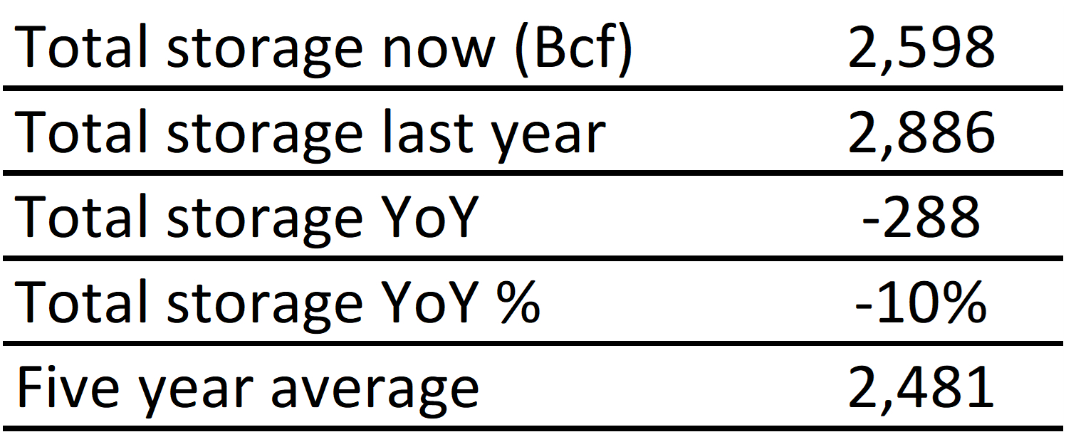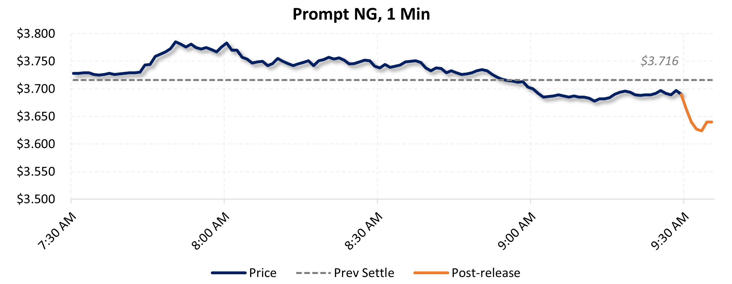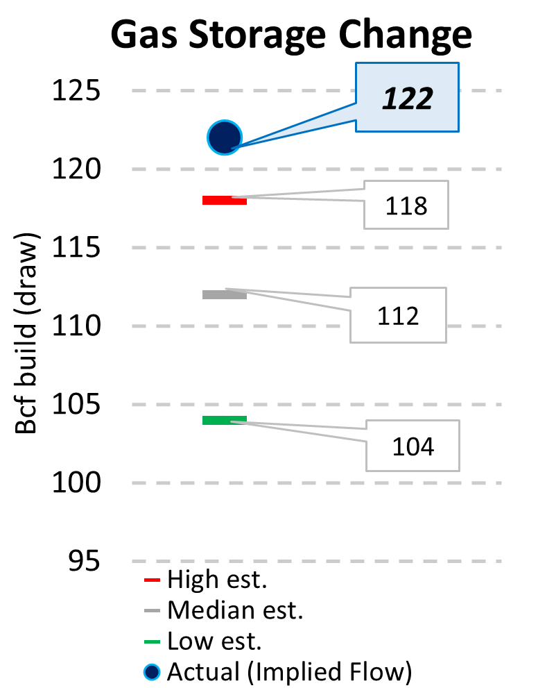 EIA reported a build of 122 Bcf for the week ending 5/30/2025. This was larger than the median estimate of 112 Bcf. Today's stat fell outside the expected range, which was 118 Bcf on the more bearish end, and 104 Bcf on the more bullish end.
