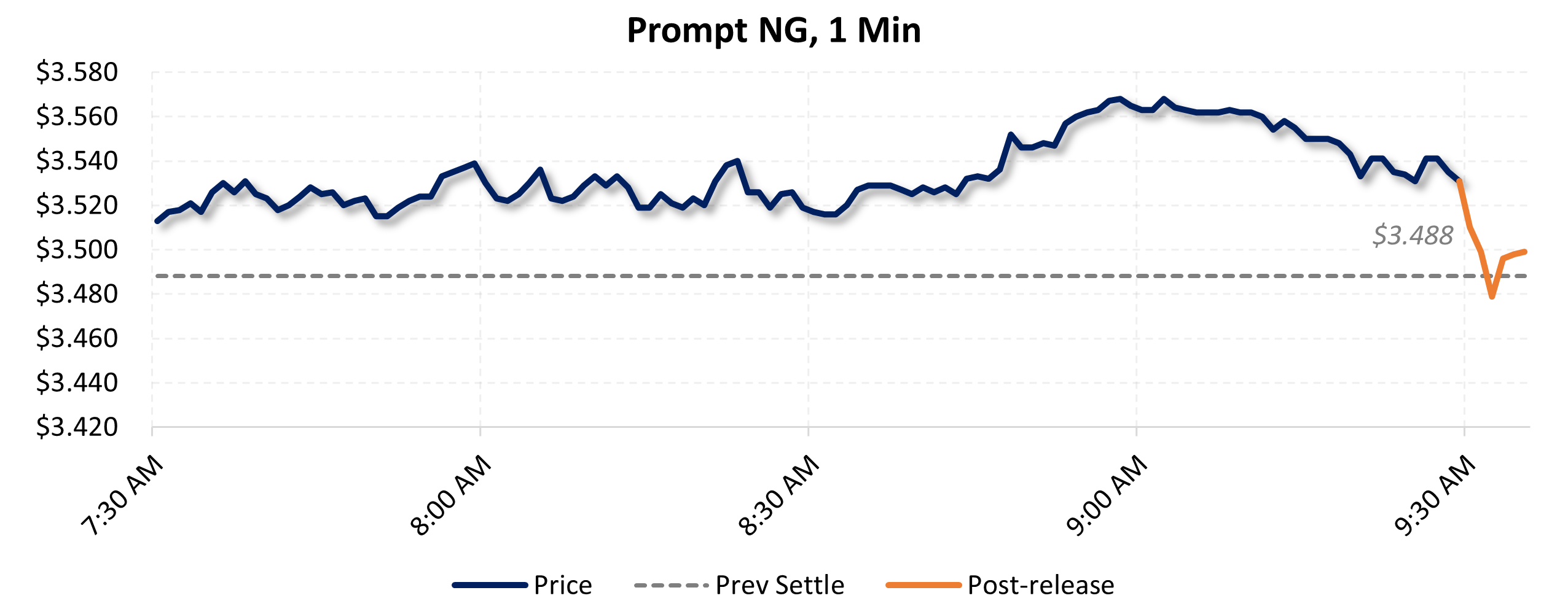 Prices were down in the five minutes following the announcement, to $3.499, from $3.531 just before 9:30AM.