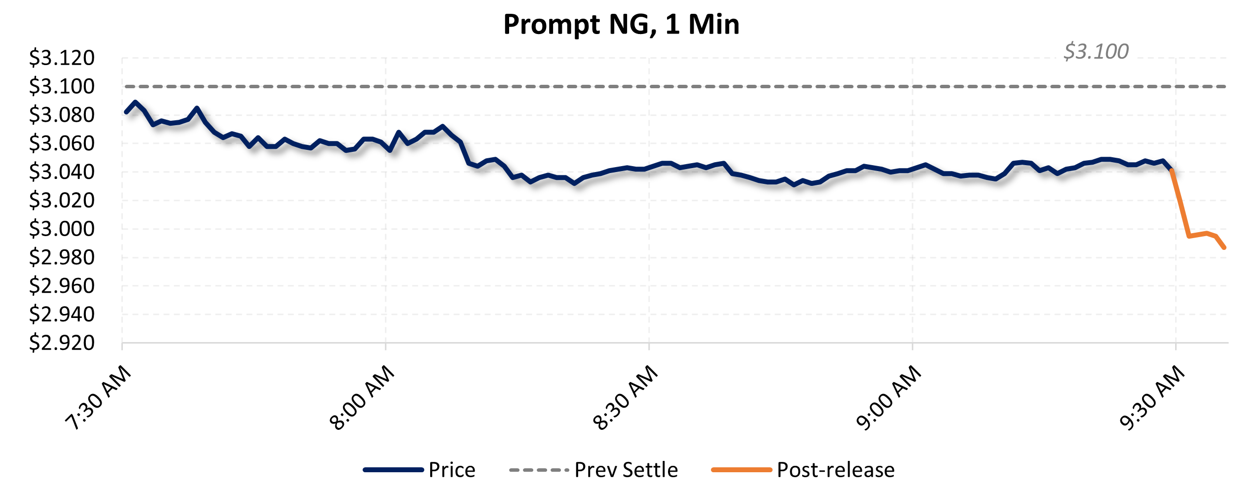 EIA reported a build of 90 Bcf for the week ending 9/12/2025. This was larger than the median estimate of 81 Bcf. Today's stat fell outside the expected range, which was 86 Bcf on the more bearish end, and 70 Bcf on the more bullish end.