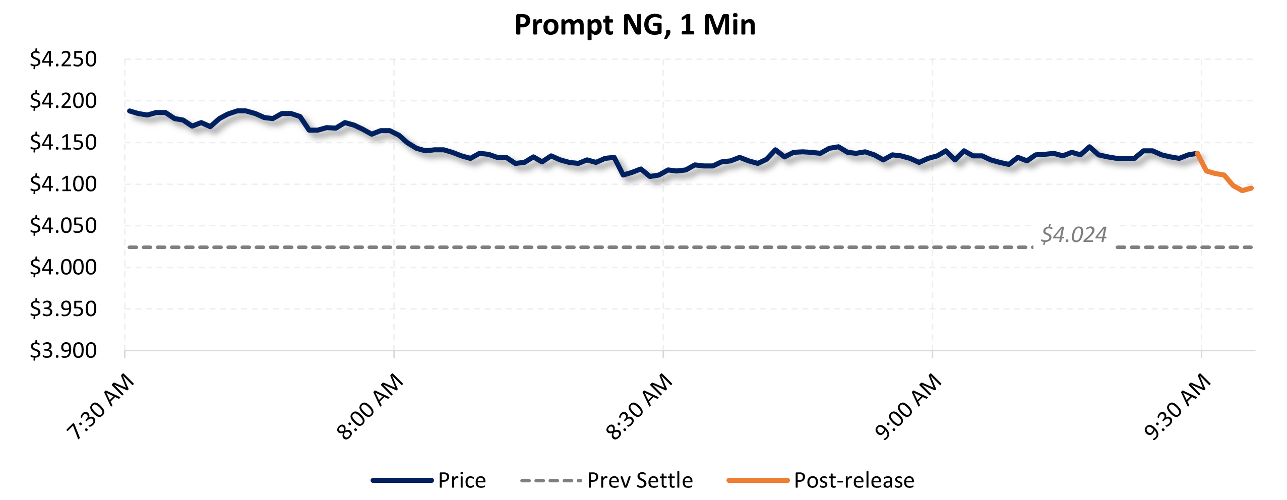 EIA reported a draw of -167 Bcf for the week ending 12/12/2025. This was smaller than the median estimate of -176 Bcf. Today's stat fell within the expected range, which was -162 Bcf on the more bearish end, and -182 Bcf on the more bullish end.