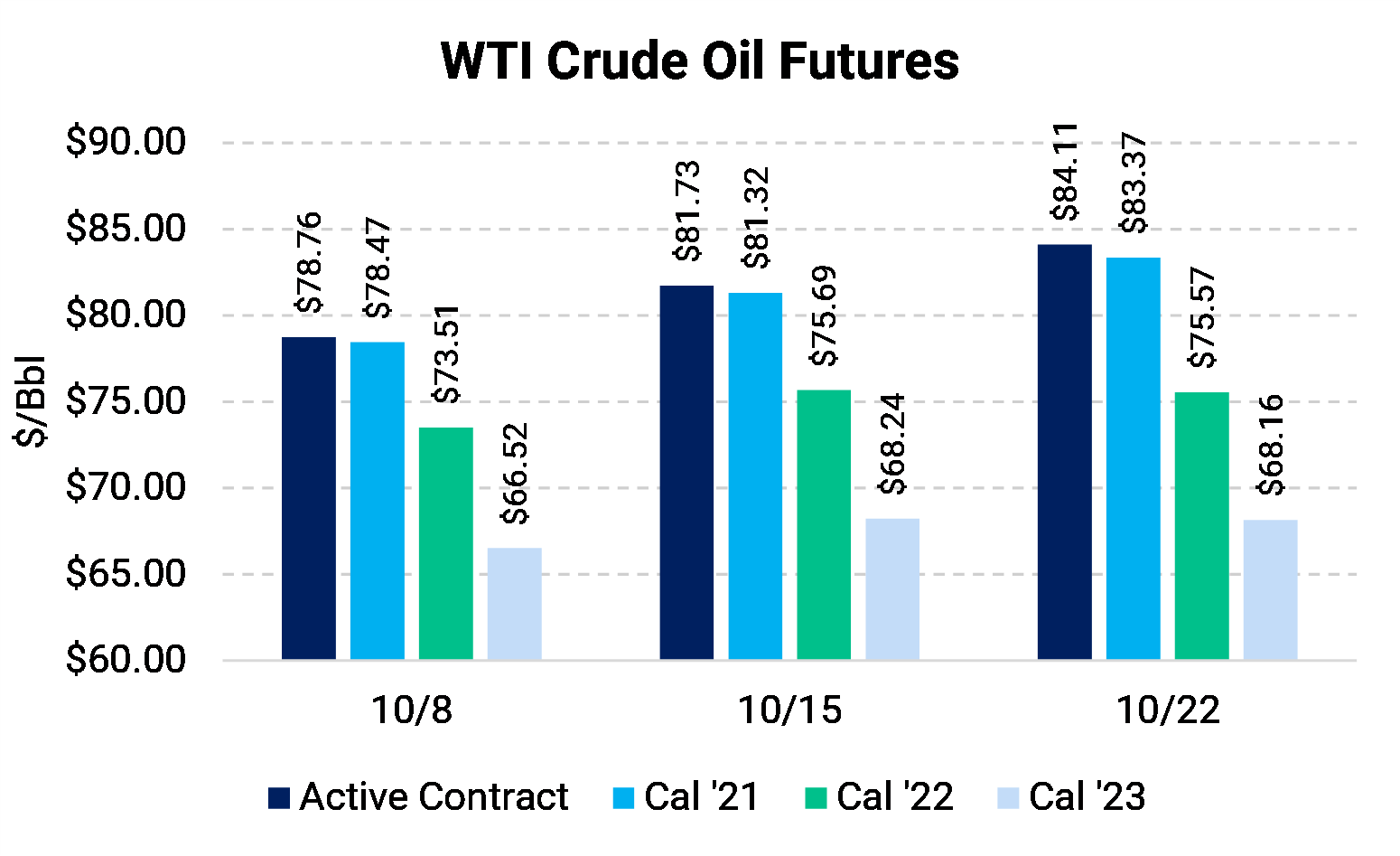 West Texas Intermediate reached another seven-year high this week, settling at $83.76. Bullish sentiment continued this week after stocks at Cushing, Oklahoma, dwindled even further.